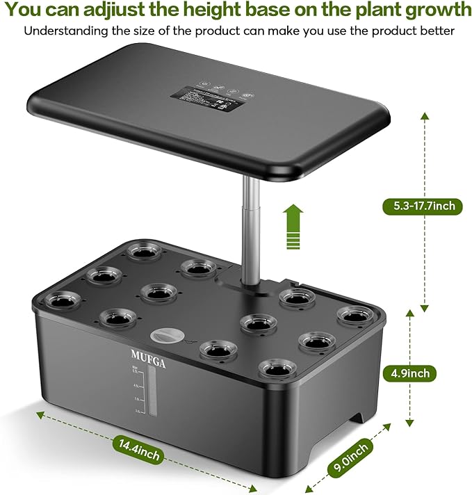 MUFGA 12 Pods Hydroponics Growing System, Indoor Garden with LED Grow Light, Plants Germination Kit, Mini Herb Garden with Pump System, Height Adjustable (No Seed)
