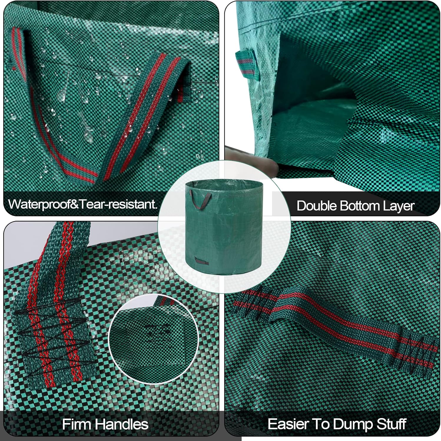 • Every Gardener Should Have Garden Bags for Debris: Each reusable Lawn and Leaf bags Heavy duty comes with a plastic ring that keeps bags open and Stand up ,easier to clear your leaves or yard debris . Reusable yard bag with 4 Reinforced handles that makes them easy to transporting .These yard bags heavy duty extra large can solve this trouble for your job.