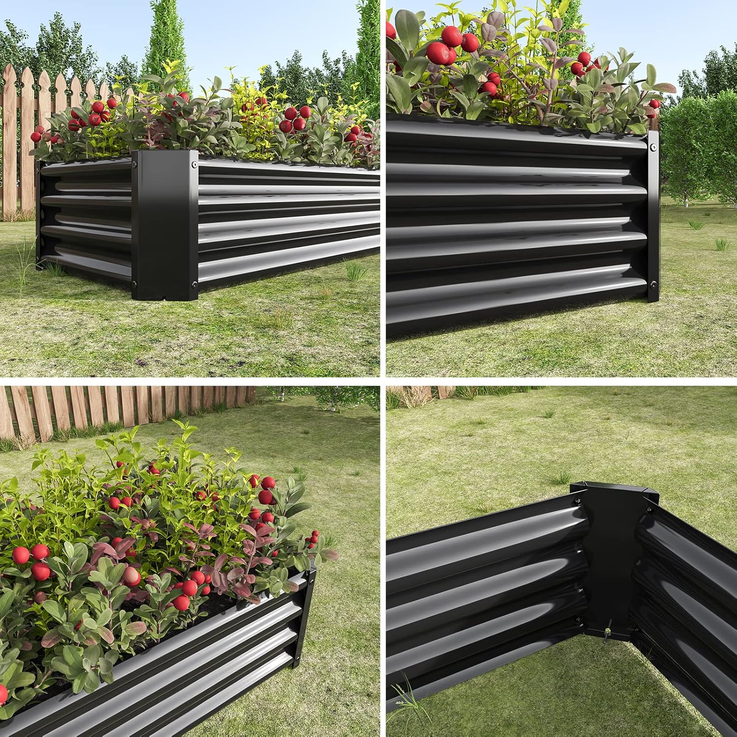 Galvanized Raised Garden Bed for Vegetables,Planter Raised Garden Boxes Outdoor,Metal Raised Garden Beds Steel Kit for Vegetables Flower Herb Patio Black Rectangle