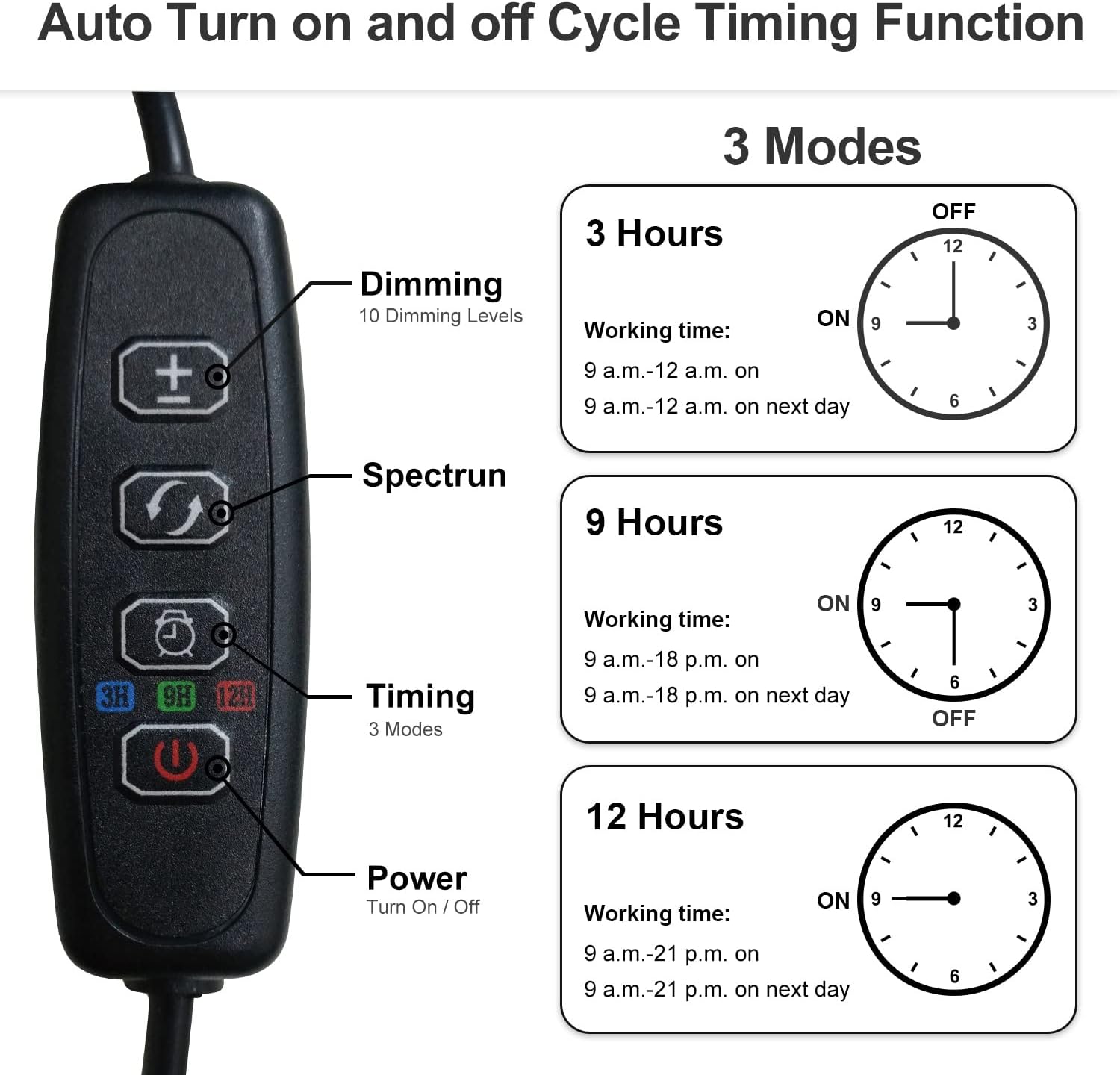 • This clip grow light offer the circular memory timer function with 3 options-3h/9h/12h.