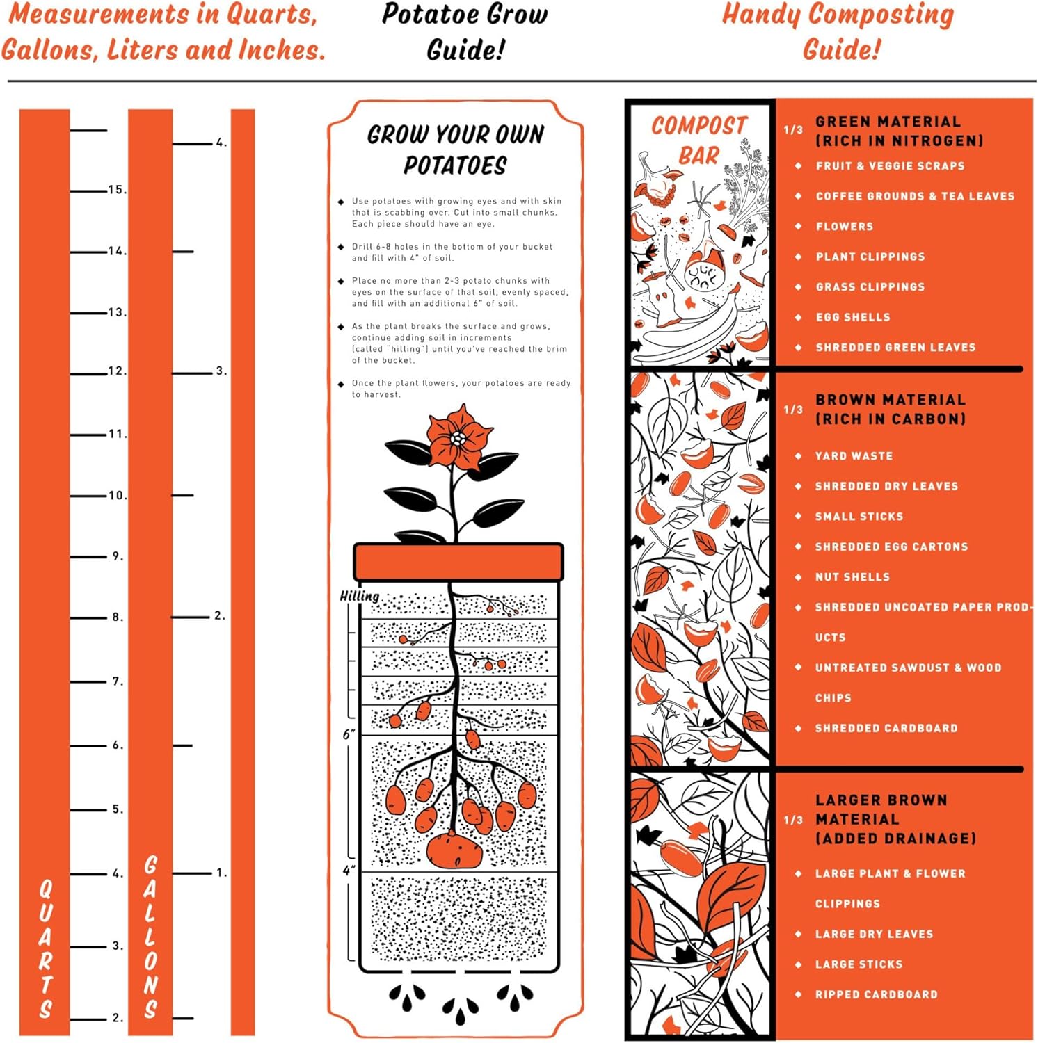 • ๐ŸŒฑ Perfect Gardening Bucket - Exterior printed with tons of useful gardening information: composting recipes, units of measure, gardening tips & more.