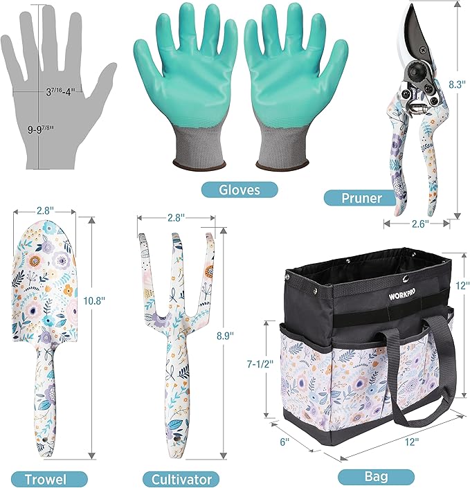 WORKPRO 5PCS Garden Tool Set, Aluminum Heavy Duty Gardening Tool Set with Bag, Outdoor Garden Hand Tools, Gardening Gifts