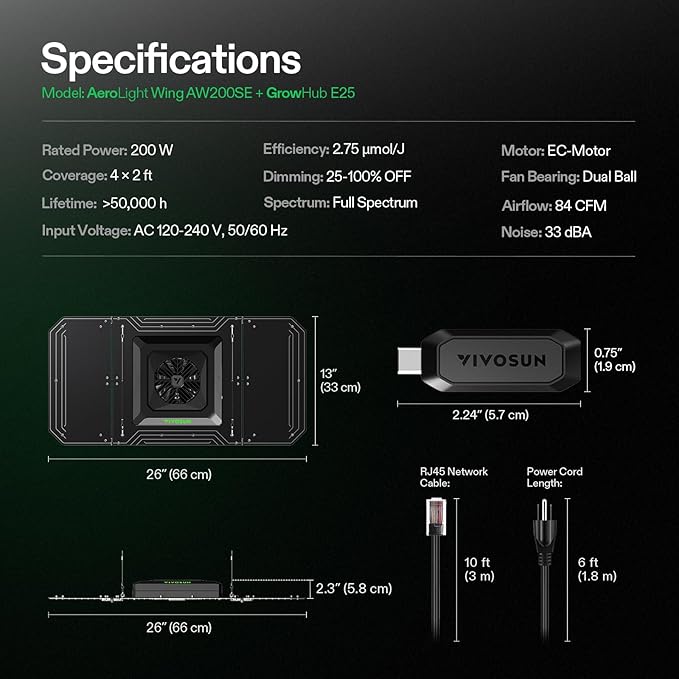 VIVOSUN AeroLight Wing AW200SE, LED Grow Light 200W with Integrated Circulation Fan & GrowHub Controller E25, Compatible with App & E42A, 2x4/3x3 Coverage, Establish an Intelligent Grow Environment