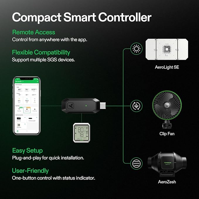 • The GrowHub E25: Connect with the Vivosun Smart Grow System, allowing you to monitor and control the AeroLight by the Vivosun App; connect a wide range of equipment and design Grow Recipes that will take your plant from seed to harvest automatically