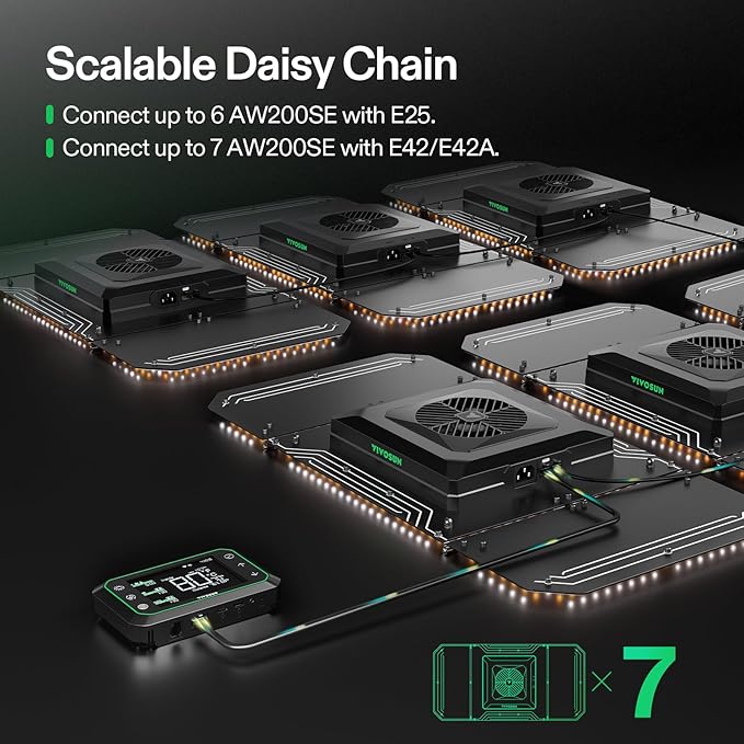 • Integrated Circulation Fan: The centrally located circulation fan in the LED balances airflow where other fans cannot reach, allowing more air to enter the canopy directly; To unlock additional features, the fan must be used with the Vivosun Growhub Controller (E42, E42A, or E25), available for separate purchase