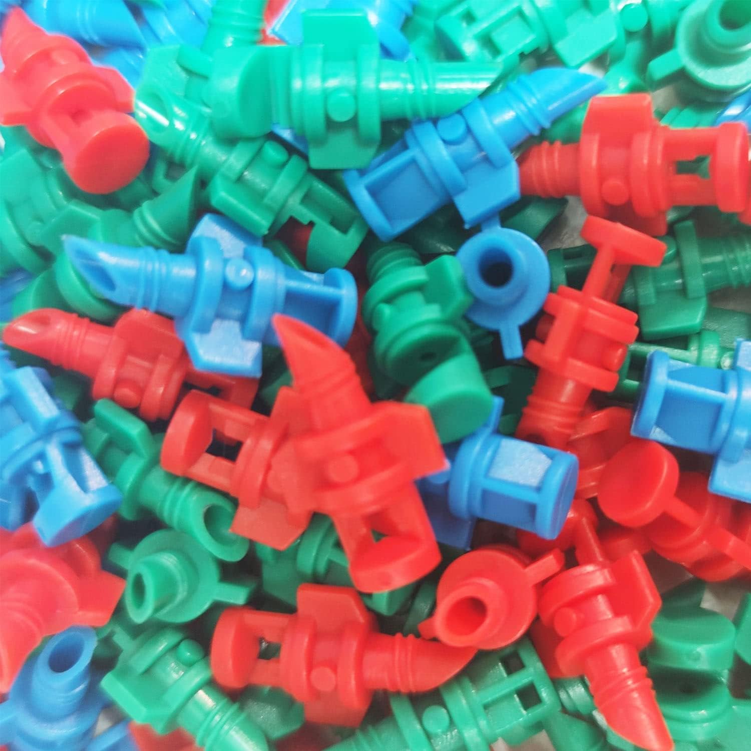 • 【Package Includes】:50pcs of 90 degree misting nozzle(blue),50pcs of 180 degree misting nozzle(green),50pcs of 360 degree misting nozzle(red).Enough quantity to meet your daily use and replacement.