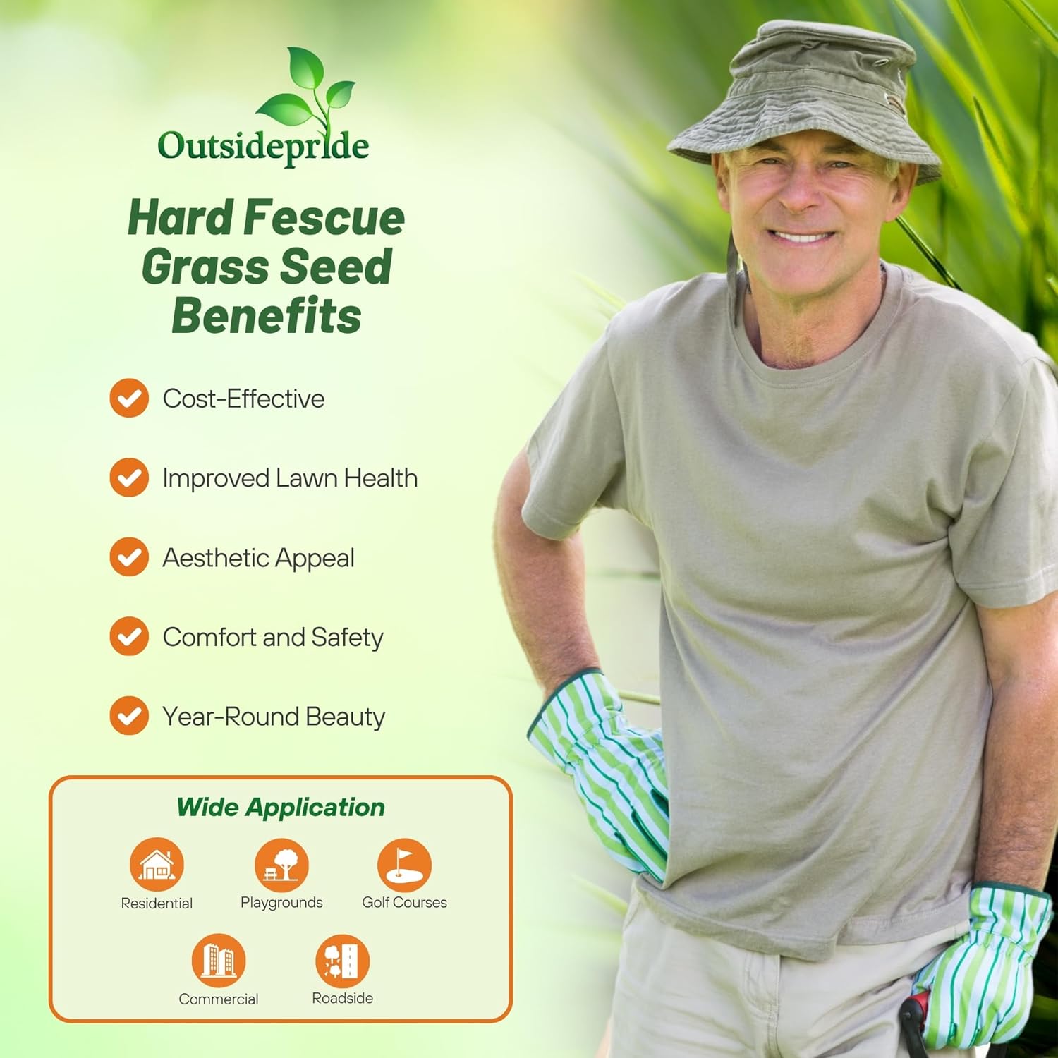 Outsidepride Hard Fine Fescue Grass Seed - 25 lbs. Low-Growing, Drought & Shade-Tolerant, OptiGrowth Coated Seed for Lawn & Turf, Ideal for Low-Maintenance, Dense, & Resilient Green Ground Cover