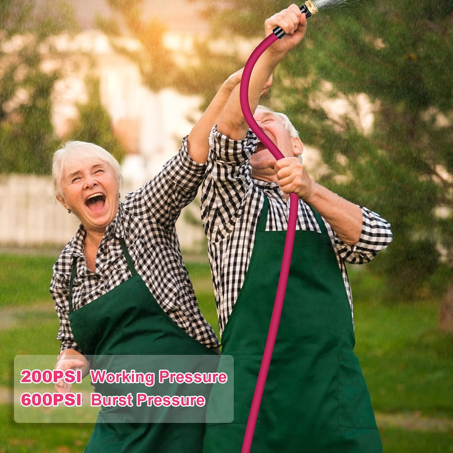 • No Kinks Under Water Pressure: The garden hose is very flexible, the open water supply system kinks will straighten automatically under water pressure, and can withstand 600PSI burst pressure and 200PSI working pressure