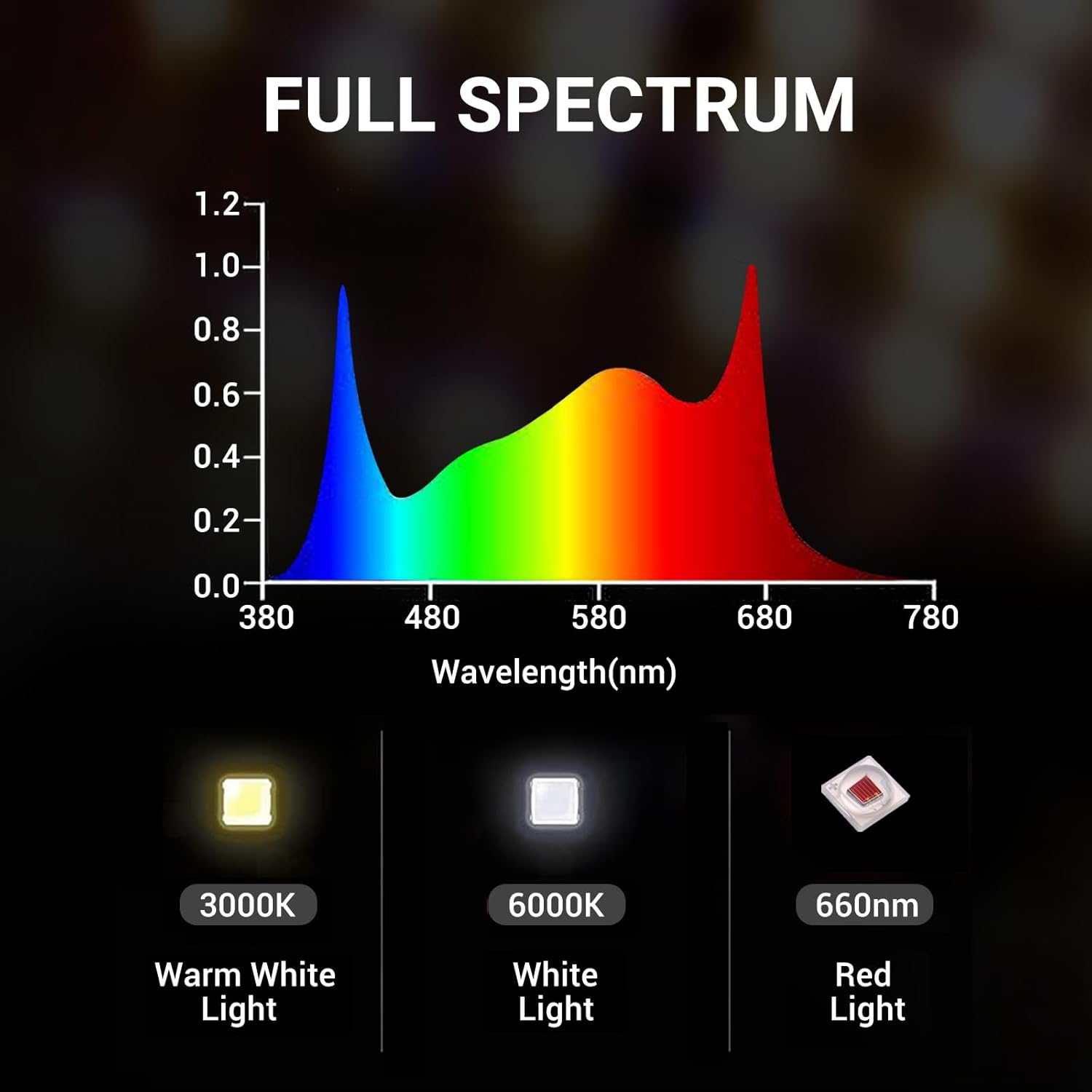 • Durable Grow Lights: Sunflower aluminum heatsink enable the bulb to dissipation heat faster and work stable. The three-proof paint protection layer on the surface of the lamp bead firmly isolates dust and sulfide, as well as water and oxidation invasion, and the solder joint position has a silicone curing waterproof effect.