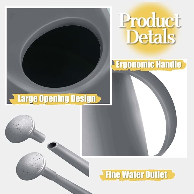 • Customizable Water Flow: Watering can with a detachable shower nozzle, easily switch between a steady stream or gentle shower to suit your plant's watering needs. Great for both indoor and outdoor plants