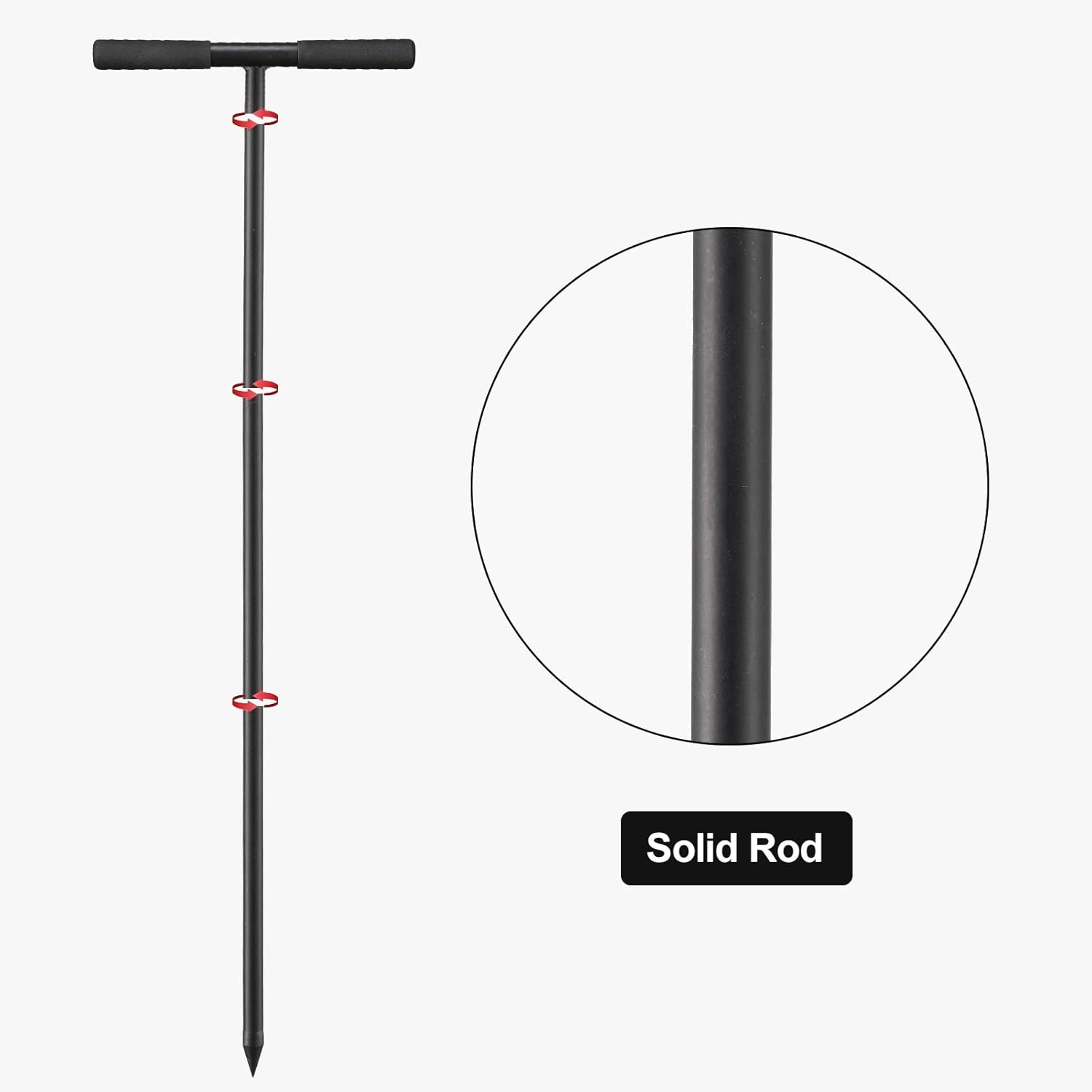 • Sharp Soil Probe: the sharp point soil probe will effectively help you penetrate hard or frozen ground without break or bend.