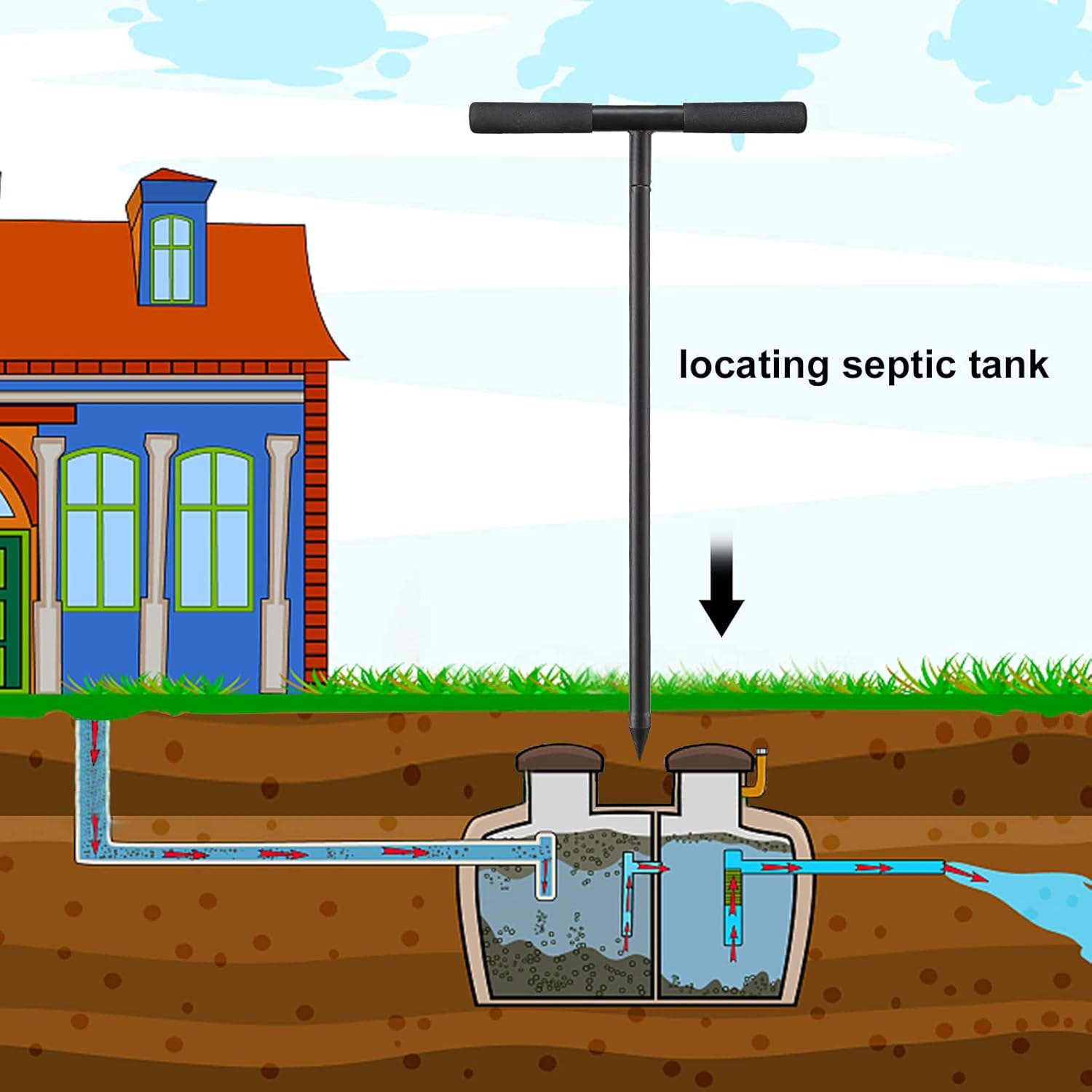 • Sturdy Probe Rod: all steel metal construction, solid probe rod for locating septic tanks, locating underground pipes and water mains, great gardening and landscaping tool.