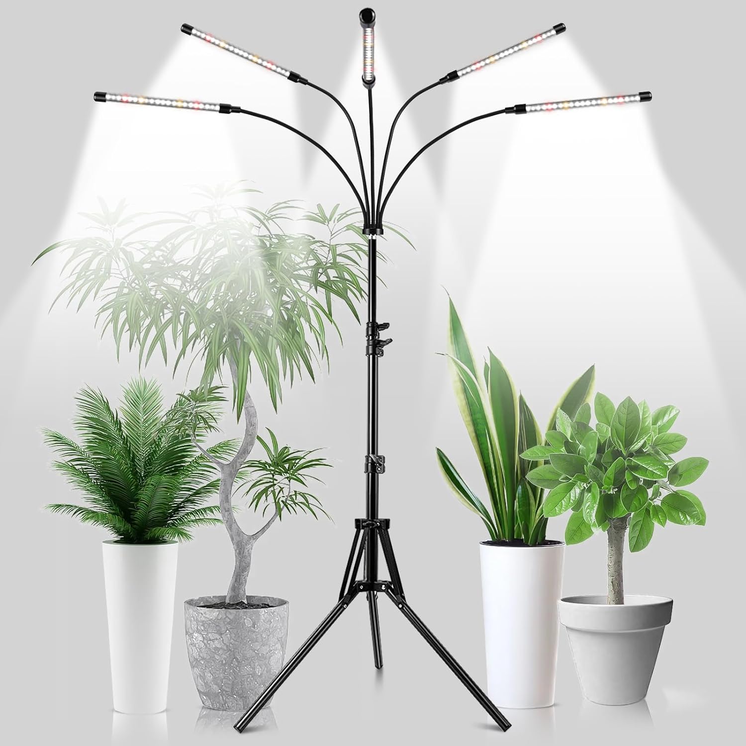 Garpsen Grow Lights for Indoor Plants, 5 Heads Full Spectrum Grow Light with Adjustable Tripod Stand, 100PCS LEDs Plant Light for Indoor Plants with 6/12/16H Timer and 3 Light Modes
