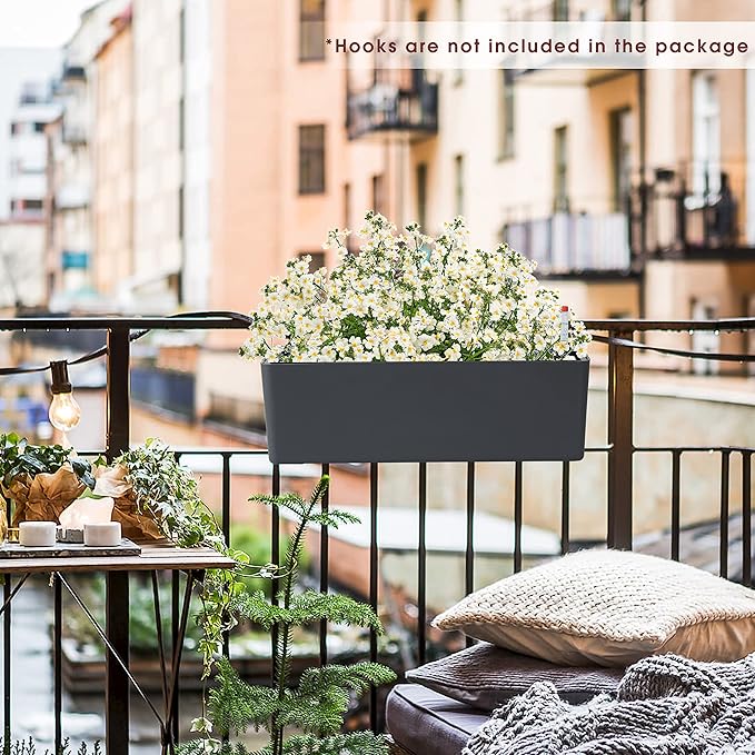 GardenBasix Elongated Self Watering Planter Pots Window Box 5.5 x 16 inch Indoor Home Garden Modern Decorative Planter Pot for All House Plants Flowers Herbs (Dark Grey,1-Pack)