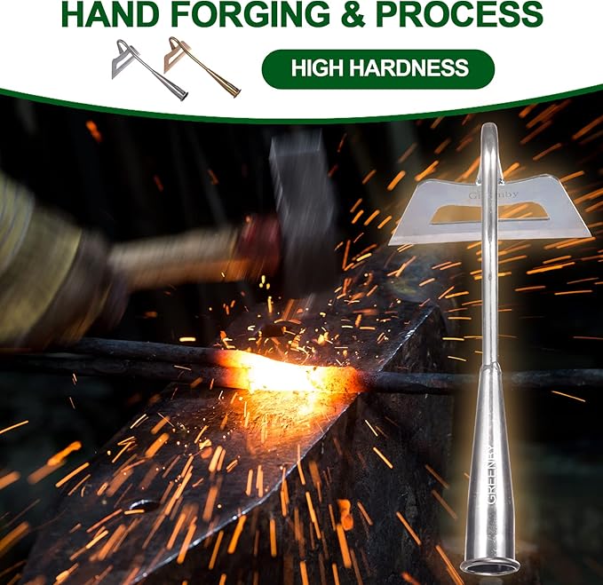 • ๐ŸŒฑใ€Hand Forgedใ€‘- Made with 100% Stainless Steel, this weeding tool is forged from manganese steel and built to last. The steel is hardened to provide exceptional strength and reliability in even the toughest gardening conditions.