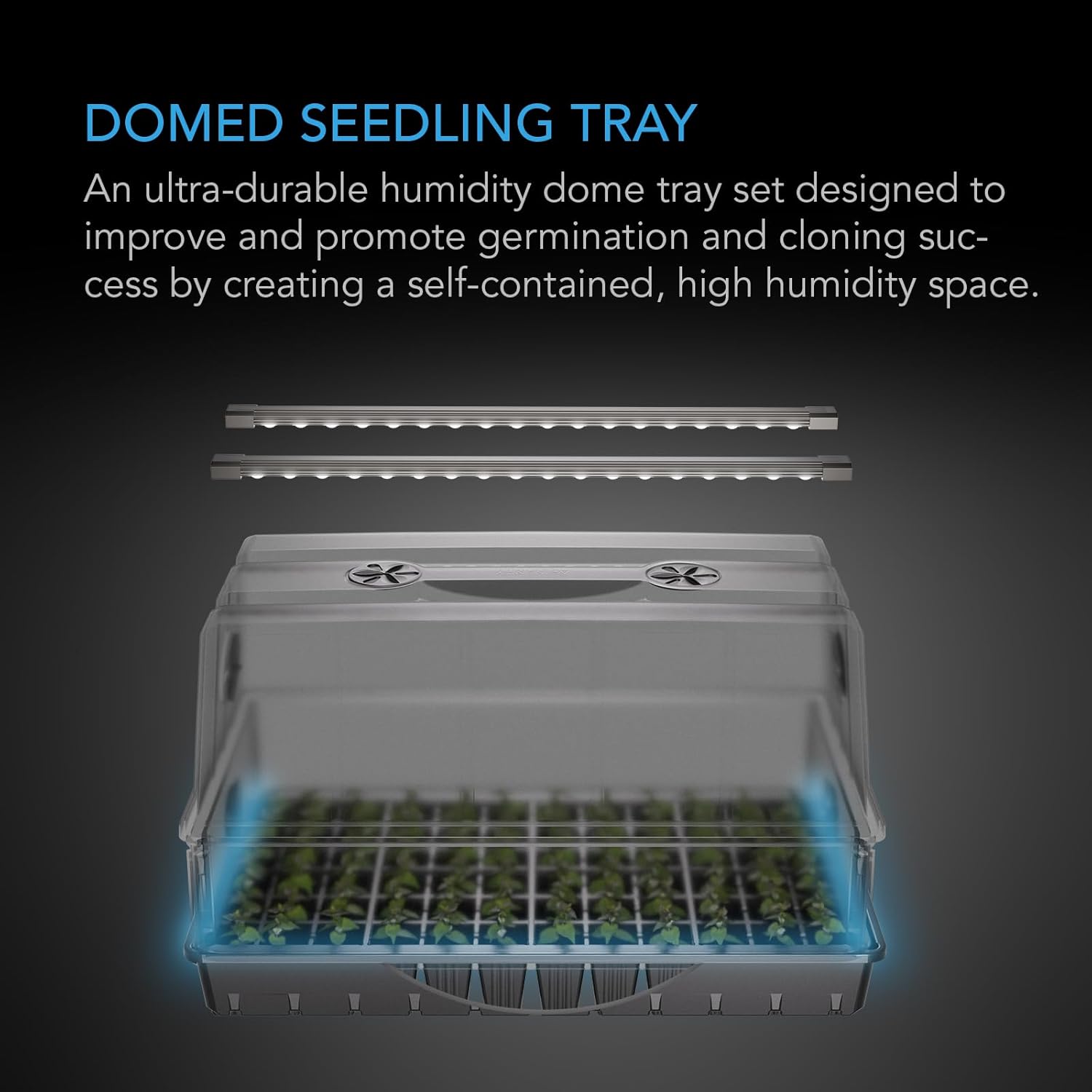 AC Infinity Heavy-Duty Large Humidity Dome w/Full Spectrum LED Grow Light Bars, Samsung LM301H EVO Diodes, 3mm Thickest Dome and 6x12 Trays, Vent Extension Panels, for Seed Starting and Propagation