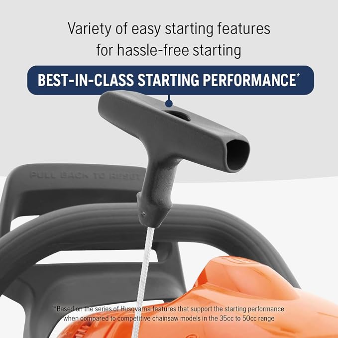 • Effortless Start-Up: Smart Start allows this Husqvarna chainsaw to quickly and easily start up with minimal effort, while the inertia-activated chain brake reduces the likelihood of injury due to kickback