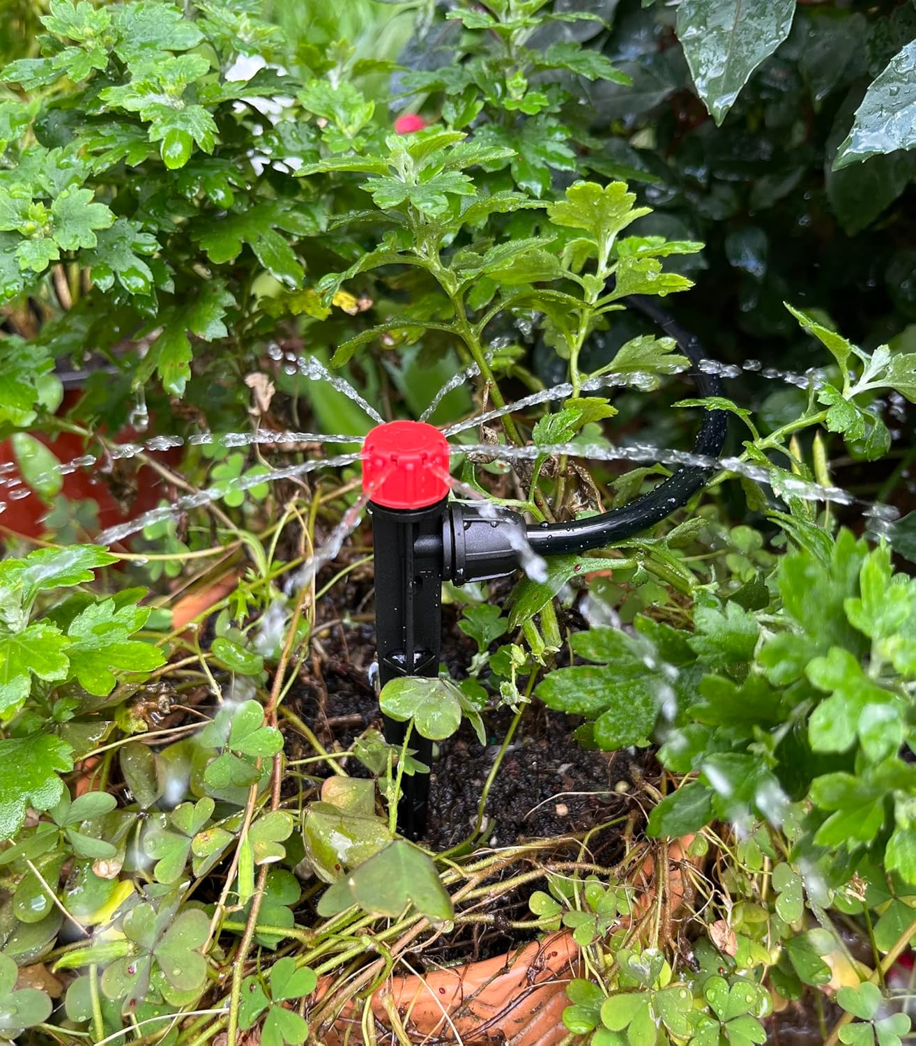 • Adjustable Emitters: you can adjust the water flow mode and sprinkling distance until a complete shut-off by rotating the cap. And the dripper cap can also be opened for easy check and cleaning