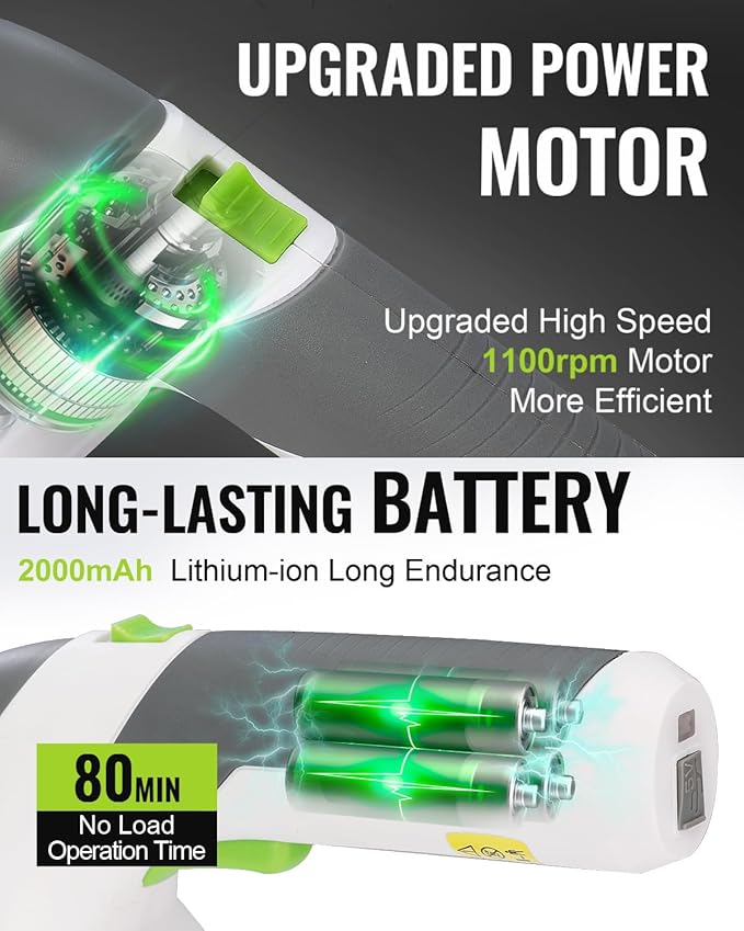 - USB-C Charging Convenience: The Type-C charging cable can be charged from a mobile phone charger (5V/2A), laptop/PC, car, or power bank USB port, making charging more convenient anywhere. Our grass shear is equipped with a 2000mAh high-capacity battery, allowing you to use the battery grass trimmer for extended periods of time without worrying about battery life issues. This cordless shrubbery trimmer takes approximately 2-3 hours to fully charge