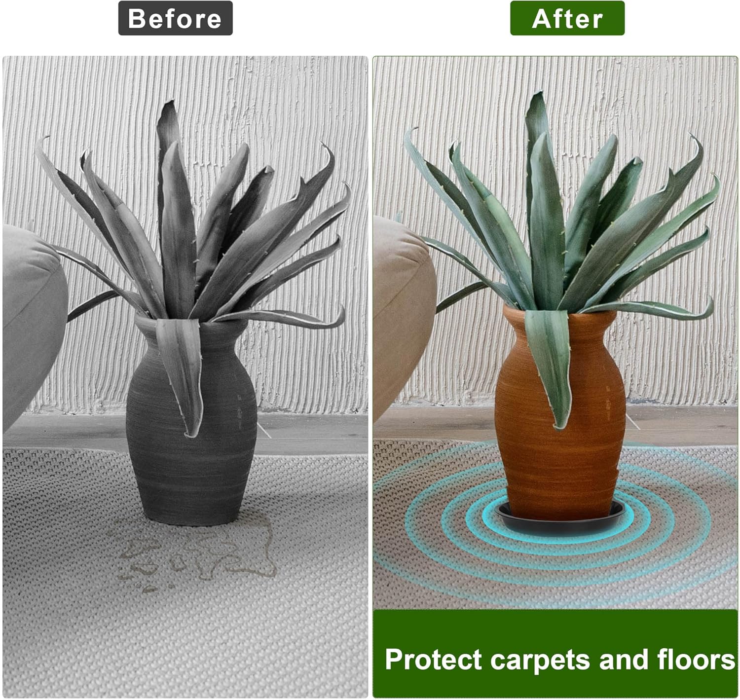 • 【Keep Clean And Tidy】The right tray height, the ideal plant drainage tray, collects excess drainage and soil, and protects your floors, carpets and furniture from water stains. These plant saucer can help you get water from the drainage holes of the flower pots, which can avoid excessive watering, and create a good soil environment for plant growth.