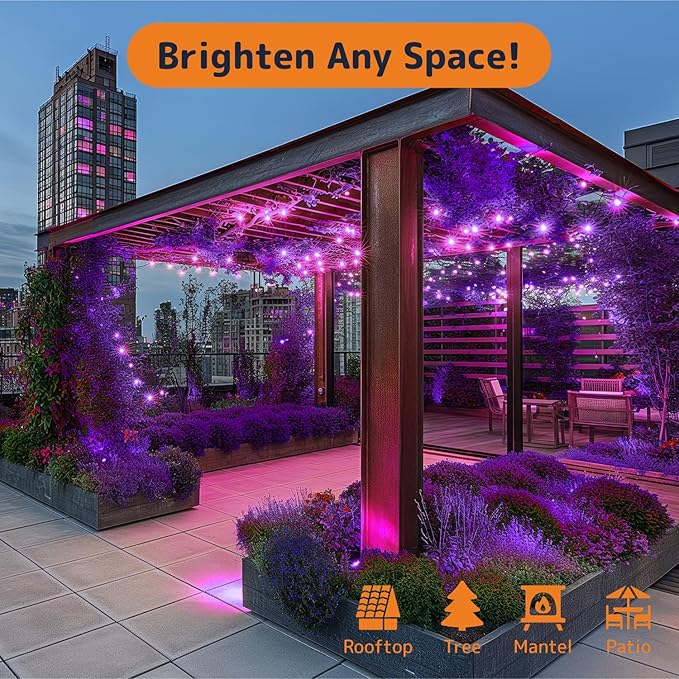 • Expandable Multi-Set Design: Link up to five strands of purple christmas lights end-to-end; 2-inch bulb spacing provides even coverage for larger spaces like porches, gardens, and party venues