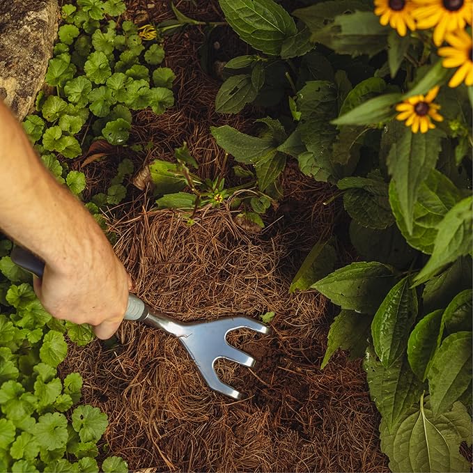 • BREAKS UP SOIL FAST Three strong, sharpened tines dig and loosen dirt for better aeration and water flow. Perfect for prepping garden beds, turning compost, and mixing in soil amendments.