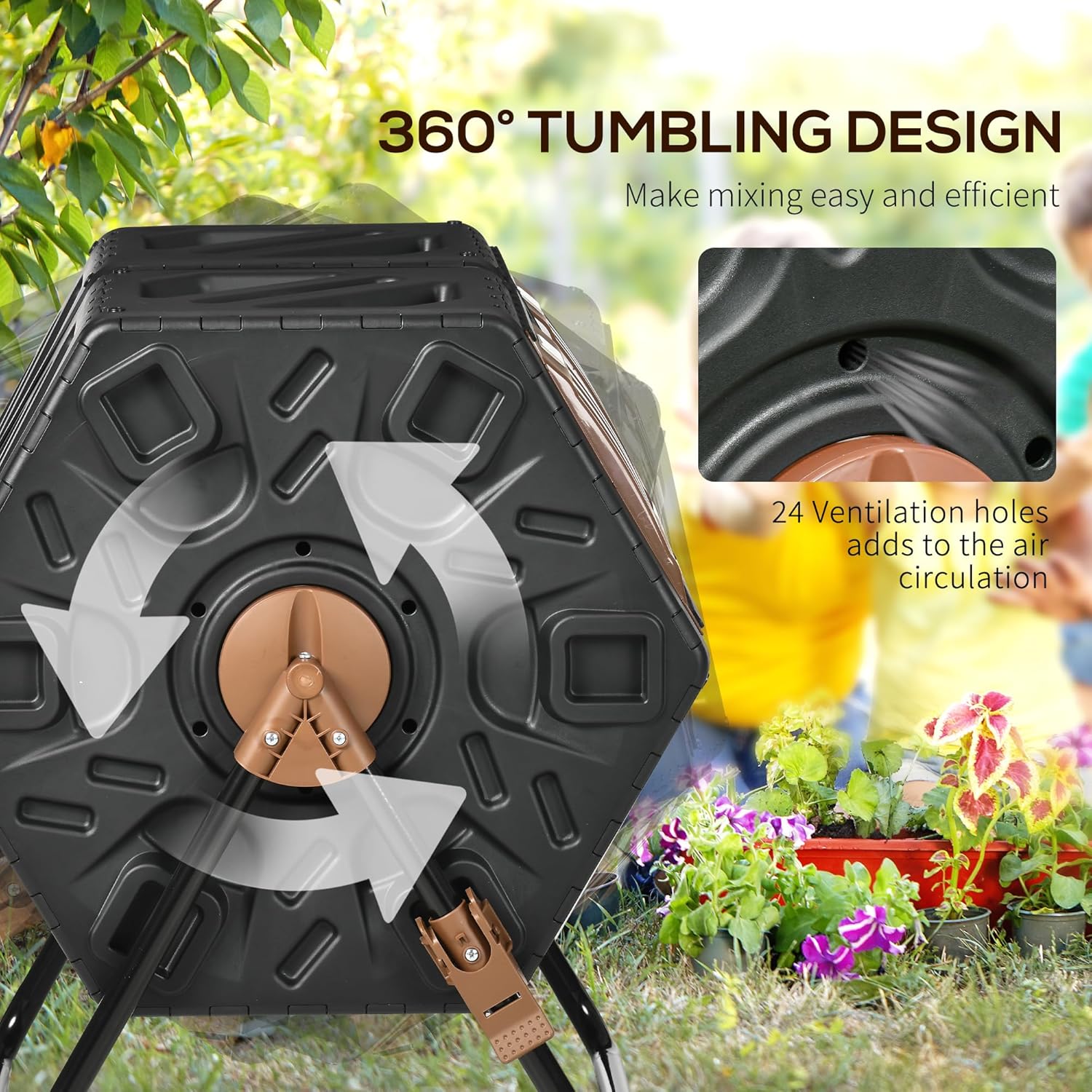Outsunny Dual Chamber Compost Tumbler Bin, Outdoor Tumbling Composter with 24 Ventilation Openings and Steel Legs, 34.5 Gallon