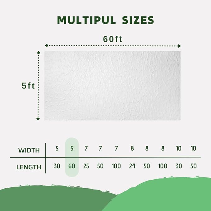 • Lightweight and Breathable Floating Row Cover: Made from 0.9 oz/sq non-woven, breathable frost fabric for plants, our frost row cover allows essential air, moisture, and sunlight to reach your plants. This frost cover helps regulate sunlight exposure to prevent overheating and maintain stable soil temperatures, ensuring optimal growing conditions, this planket frost protection plant cover guarantees healthy growth.
