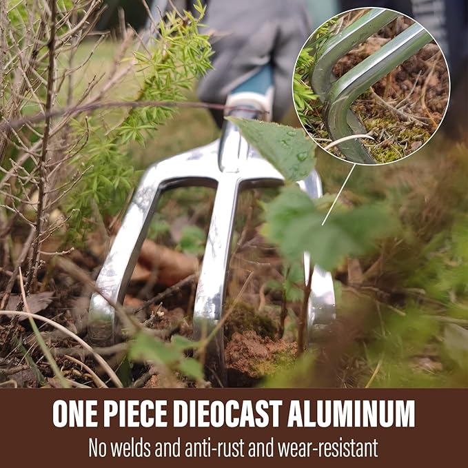 • ONE PIECE DIE-CAST ALUMINUM= LIGHTER,STRONGER: Our in-house foundry uses marine-grade aluminum alloy to create gardening tools that are anti-rust and wear-resistant of the absolute highest quality. These tools support you in fixing or overcoming any problems your garden faces,So go ahead, channel your inner green thumb and let our tools help you create the garden of your dreams!