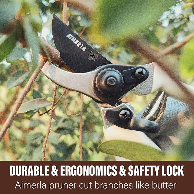 • ERGONOMIC HANDLE, NON-SLIP RUBBER: Featuring 7 different gardening tools with hand trowel, transplant trowel, garden rake, garden fork, weeder, weeding knive and pruner, this set from Aimerla is a Green team for anyone who wants to stock up on ergonomic hand tools with soft silicone handle covers for a firm non-slip grip. The materials is weatherproof and at the correct length for better leverage. Integrated hang hole makes for simple storage. This is THE perfect gift for DIE HARD GARDEN LOVERS!