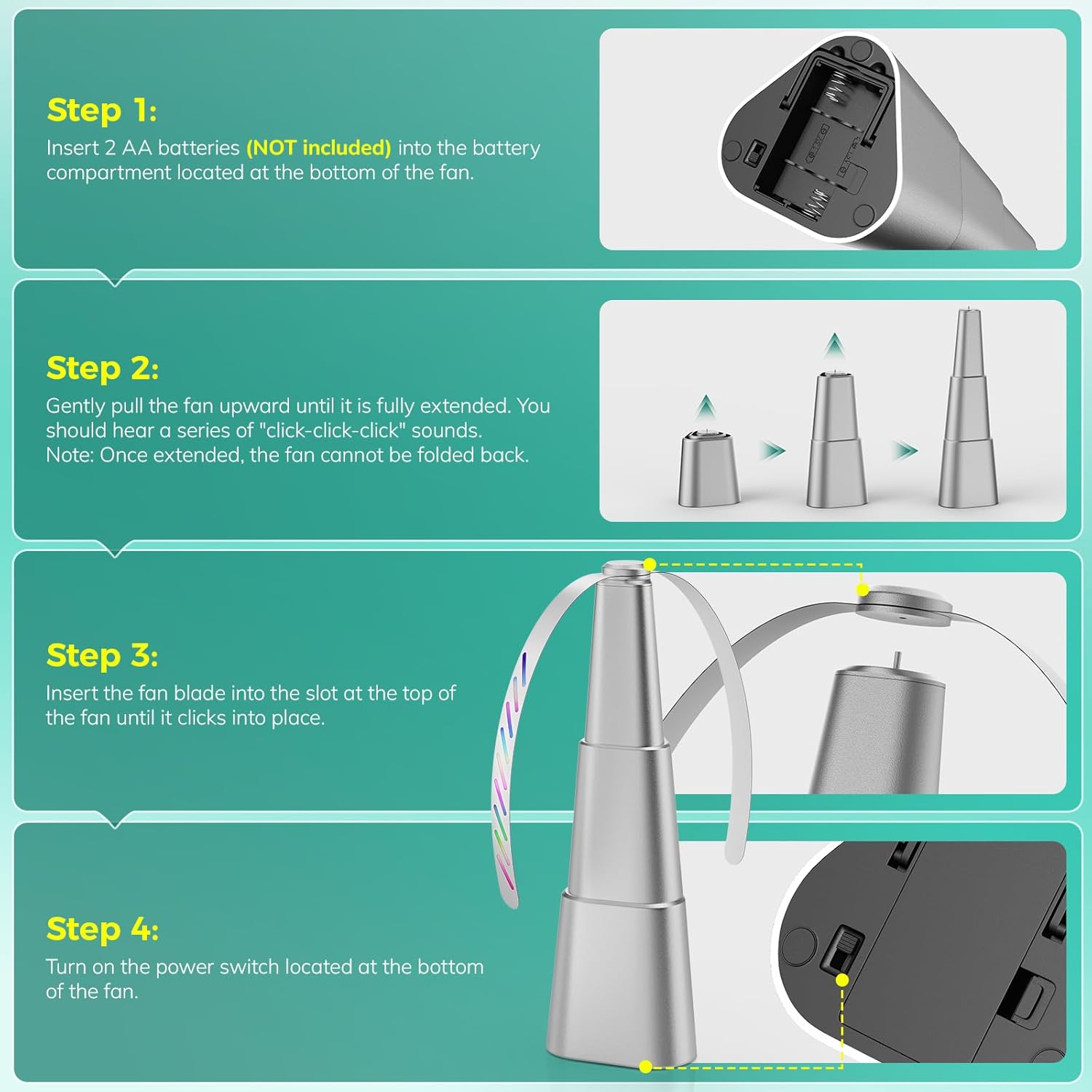 • 【Portable Table Food Fan】The table fan is powered by 2 AA batteries (NOT included), lightweight and easy to carry, Made of high-quality ABS, sturdy and durable.