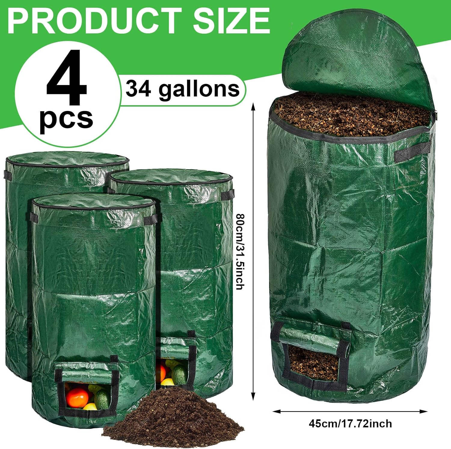 • Easy to Open and Move: compost bins outdoor are designed with openings at the top and bottom, easy and convenient for you to open and check the fermentation status of compost, or take out organic fertilizers, and they come with reinforced handles to make the bag easy to carry move