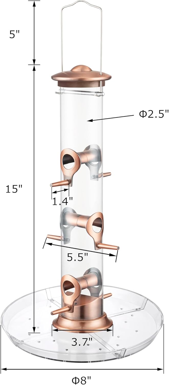 iBorn Bird Feeders Seed Catcher for Outside Hanging 6 Port Bird Feeder for Cardinal Birds Aluminium Metal,Brushed Copper Finishing 14 Inch 6 Port (Seed is not Included)