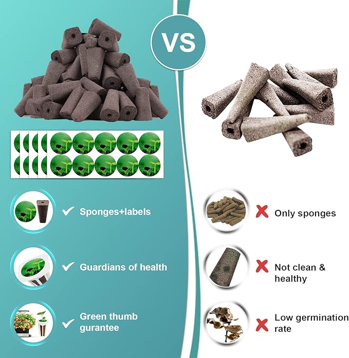 • 【Easy to Grow】Premium compressed peat grow sponges with 50 pod labels which always best to block as much light as possible from reaching the pod medium and effectively prevent harmful substance, say goodbye to annoying messy and cleaning