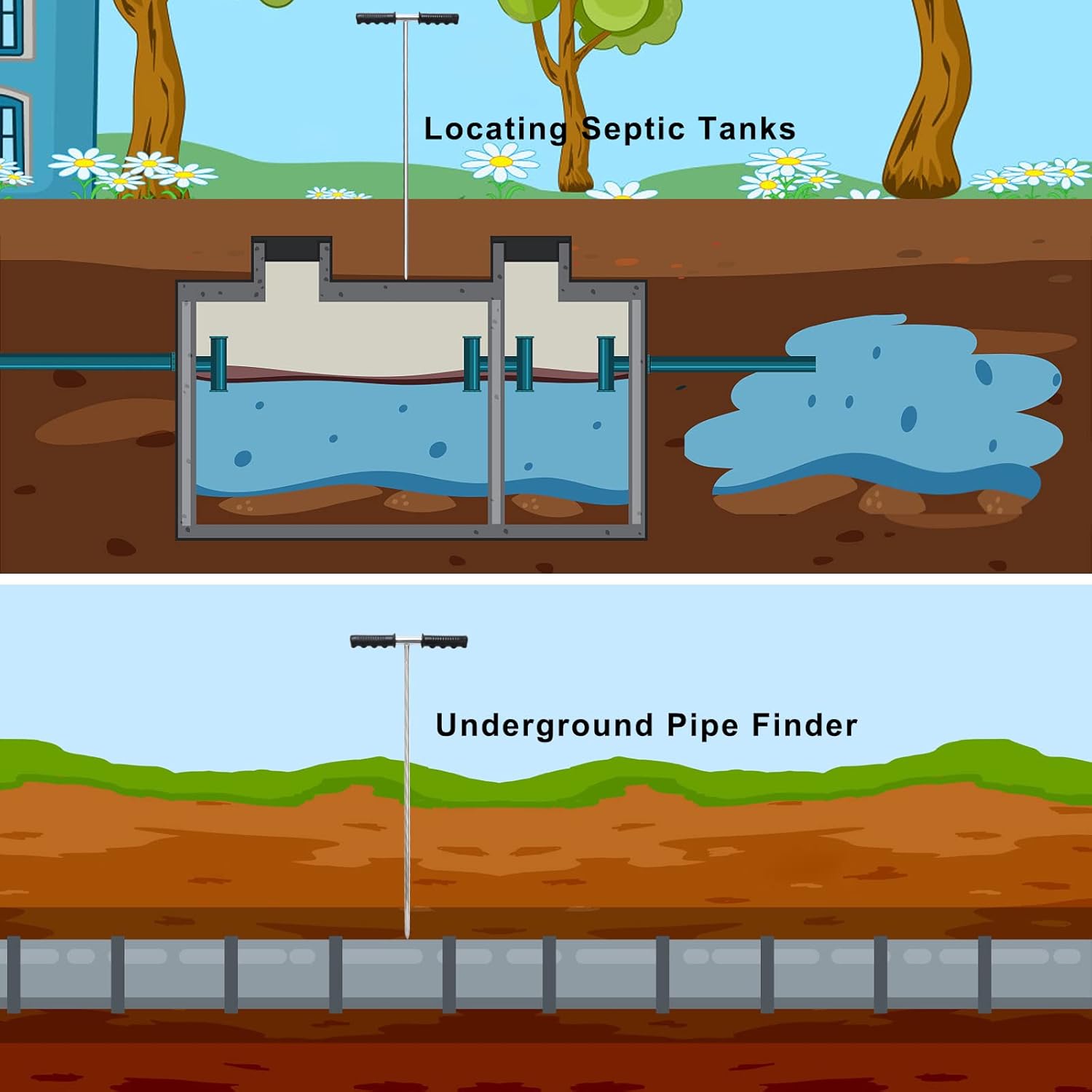 • 【Heavy Duty Probe Rod】Our probe rod offers a quick,convenient,and effortless way to probe the soil without straining your hands.Crafted from stainless steel construction,36-48inch hight adjustable,it ensures maximum durability and sturdiness,allowing you to effortlessly probe even hard or frozen soil without risk of bending or breaking-ensuring long-lasting reliability.
