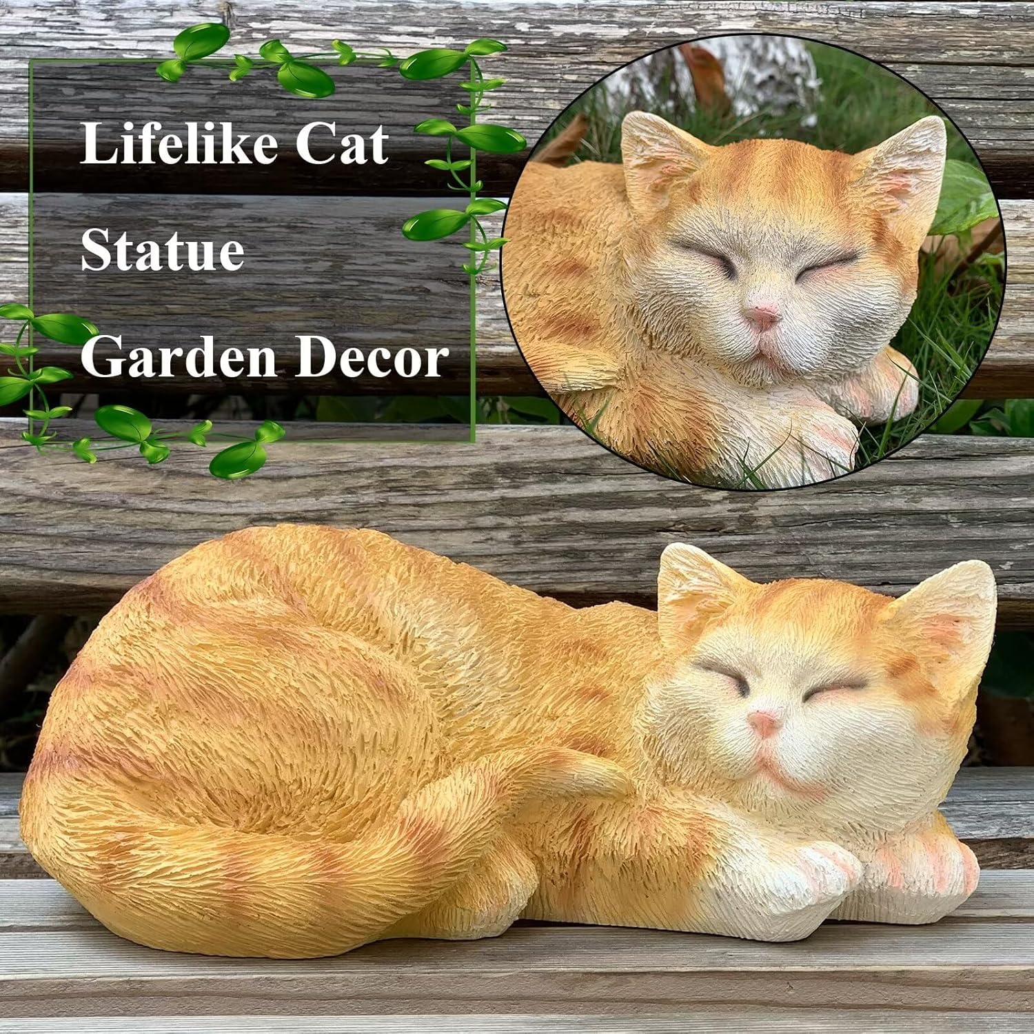 Sleeping Cat Statue, Outdoor Cat Sculpture & Figurine Lawn Ornament, Orange Tabby Statue for Patio, Lawn, Yard Decorative, Cute Kitten Garden Decor