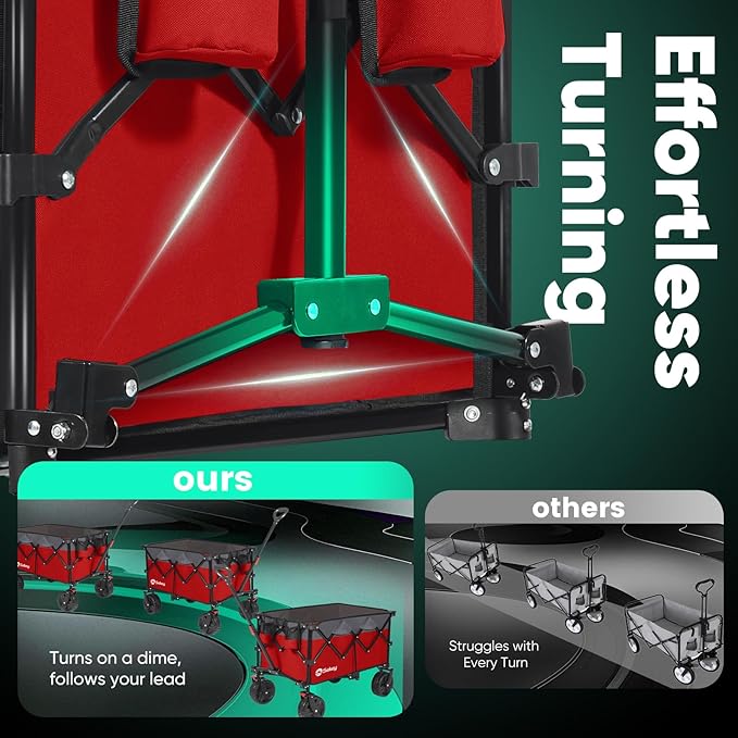 • 【𝐄𝐱𝐭𝐫𝐚 𝐋𝐚𝐫𝐠𝐞 𝐂𝐚𝐩𝐚𝐜𝐢𝐭𝐲】 : Equipped with high quality heavy duty metal frame to load up to 33𝟬𝐋𝐁𝐒 and possesses a much 𝐃𝐄𝐄𝐏𝐄𝐑 and 𝐄𝐍𝐋𝐀𝐑𝐆𝐄𝐃 storage space of 36.2" L x 22.4" W x 14.2" H. The roomy internal volume and surprise loading capacity are both increased by 𝟏𝟎𝟎% than other wagons overall. Two mesh cup holders beverages safe and sound.