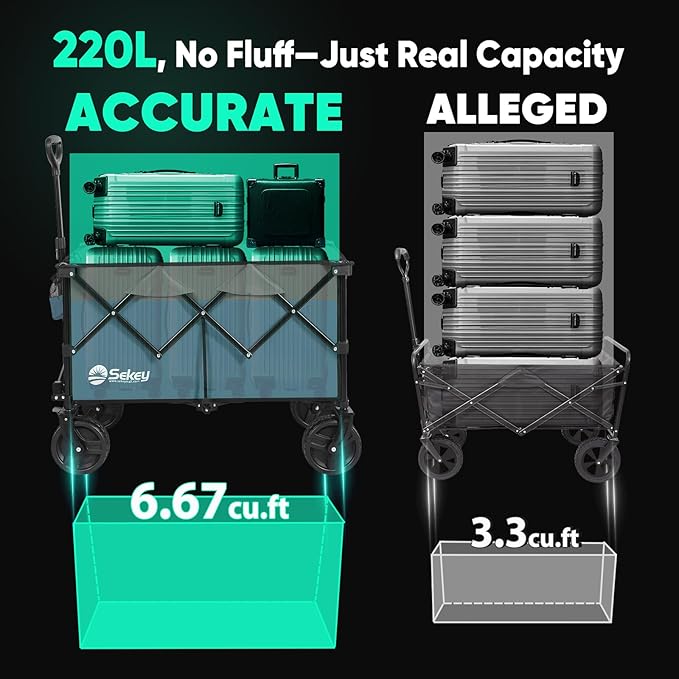 • 【𝐆𝐨 𝐀𝐧𝐲𝐰𝐡𝐞𝐫𝐞 𝐖𝐡𝐞𝐞𝐥𝐬】: Featuring 𝟖" 𝐝𝐢𝐚𝐦𝐞𝐭𝐞𝐫 𝐰𝐡𝐞𝐞𝐥𝐬 𝐚𝐧𝐝 𝟑" 𝐰𝐢𝐝𝐞 𝐭𝐫𝐞𝐚𝐝𝐬, Sekey wagon glides effortlessly over sand and rough terrain. The 𝐚𝐧𝐭𝐢-𝐬𝐥𝐢𝐩 𝐫𝐮𝐛𝐛𝐞𝐫 strip enhances traction and reduces vibrations, while the 𝐛𝐮𝐢𝐥𝐭-𝐢𝐧 𝐛𝐫𝐚𝐤𝐞𝐬 provide reliable stopping power wherever you go.