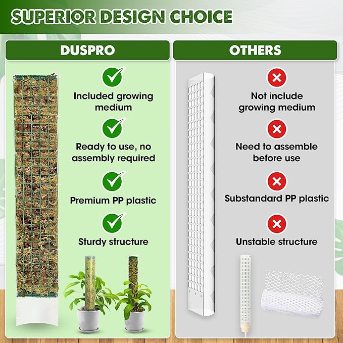 • ๐ŸŒฟโœจDUSPROโ€™S QUALITY COMMITMENT: We ensure that our moss poles for potted plants monstera undergo strict quality control procedures and meet our high-quality requirements. However, if for any reason you are not fully satisfied, please feel free to contact us; our professional customer service staff will be delighted to provide you with a replacement or refund. Be the first one to own this unique item, and you won't be disappointed. Let's buy now!
