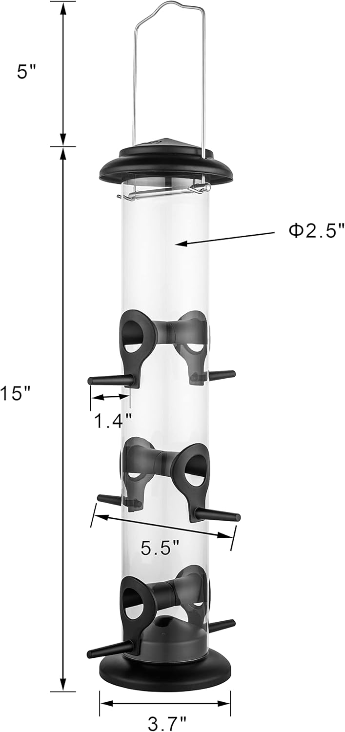 • 【Black Power Coated,No Color Fading, Great for all the year round feeding】Wear and Worn, Never Rust. All Metal top, base, feeding ports, perches, black power-coat,rust resistant, robust construction to sustain all weather days. It features royal-stylistic black outlook, traditional design inviting more feather birds to your garden, add more liveness to your garden life.