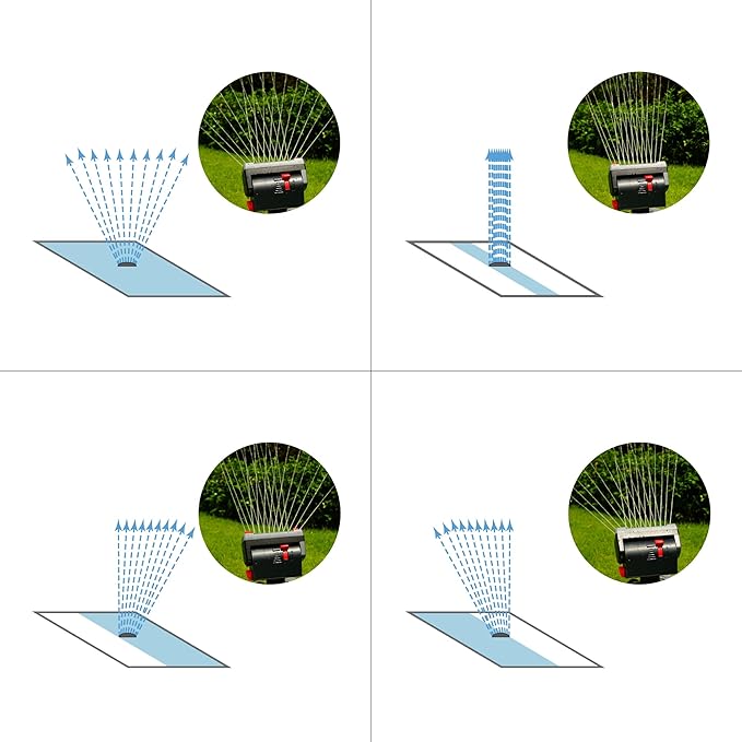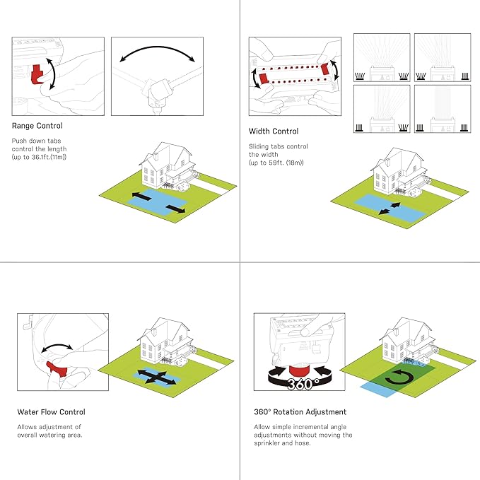 • Flexible four-way adjustments (width, length, water flow, and 360-degree angle) provide precision watering right where it is needed