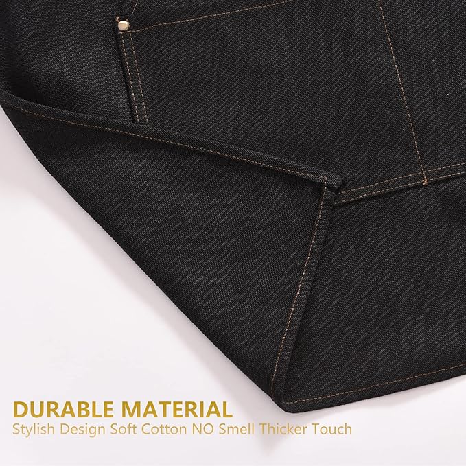 • 【Canvas Heavy Duty Apron】This apron can make you look more professional and fashionable from elaborate design to high-quality materials.Apron is handcrafted from 100% soft cotton, no smell, eco-friendly organic apron.Thicker than ordinary uniform cloth apron.And the exquisite hardware buckle and double stitched pockets make the apron look more stylish.