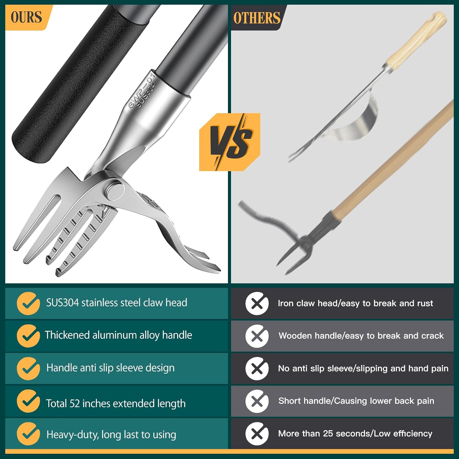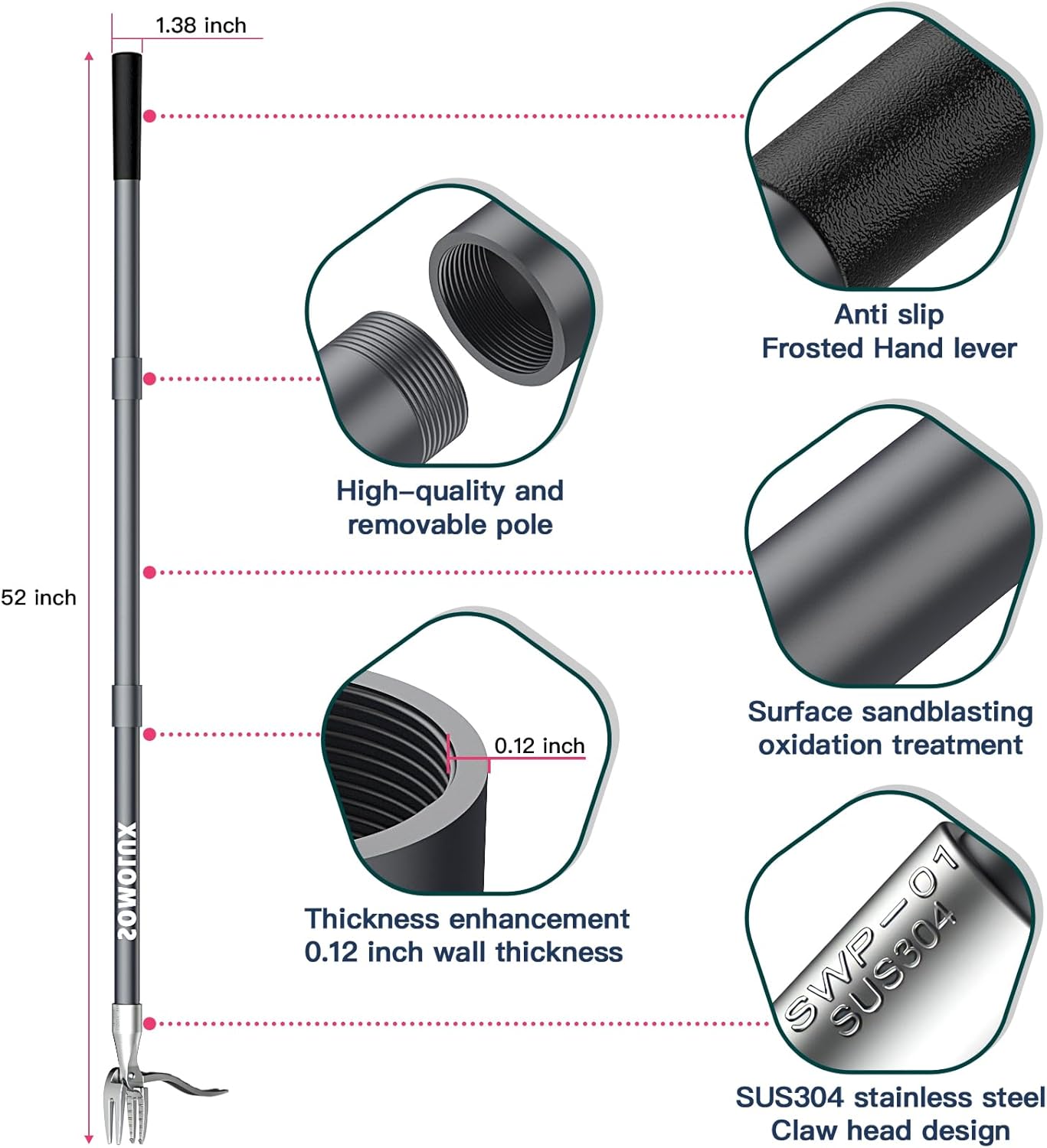 SOMOLUX 52'' Weed Puller Tool Stand-up Weeder with Metal Long Handle/Stainless Steel Claw, Gardening Manual Tool Weed Gripper/Picker/Remover No Bending/Kneeling to Remove Dandelion Form Lawn Patio
