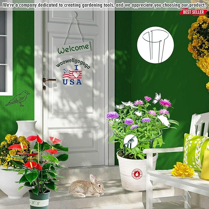 - Premium Plant Support Ring: Our plant support ring is made of durable, green plastic-coated steel that is weather-resistant and won't easily fade. It is a better option than wood supports as it is reusable and long-lasting. The ring is built with thicker and stronger 4mm iron wire to provide ample support and protection for stem plants such as roses, peonies, and hydrangeas. The dark green color of the ring blends seamlessly into the plants and appears almost invisible.