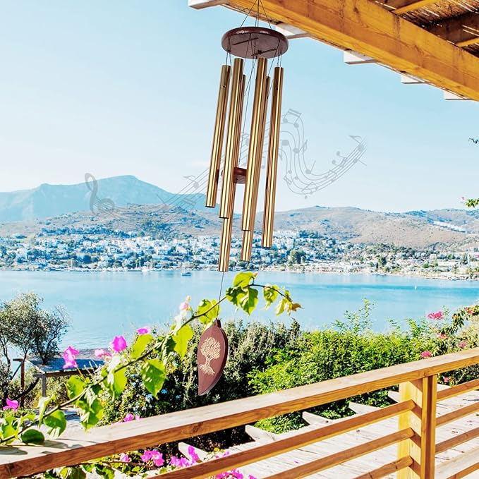 Golden Wind Chimes for Outside Deep Tone Aluminium Windchimes Outdoors Memorial Wind Chime for Loss of Loved One Mom Bereavement Memorial Gifts Sympathy Wind Chimes Patio Decor Grief Gifts for Women