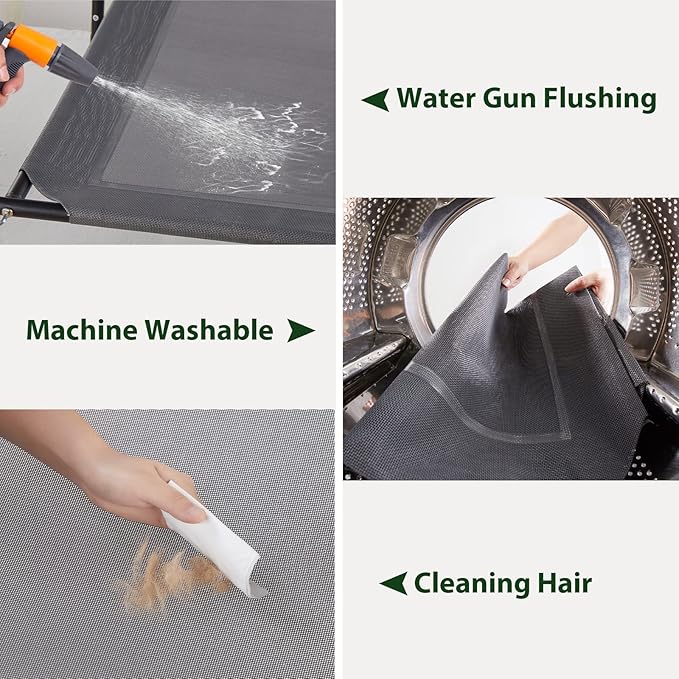 • Portable Cooling Dog Bed: This raised dog bed is easy to assemble and disassemble, ideal as an outdoor dog bed or an indoor raised dog bed. This cooling dog bed is easy to clean. Wash the mesh with tap water, a hose, or a damp towel. For deeper cleaning, use a mild soap or natural all surface cleaner and rinse thoroughly.