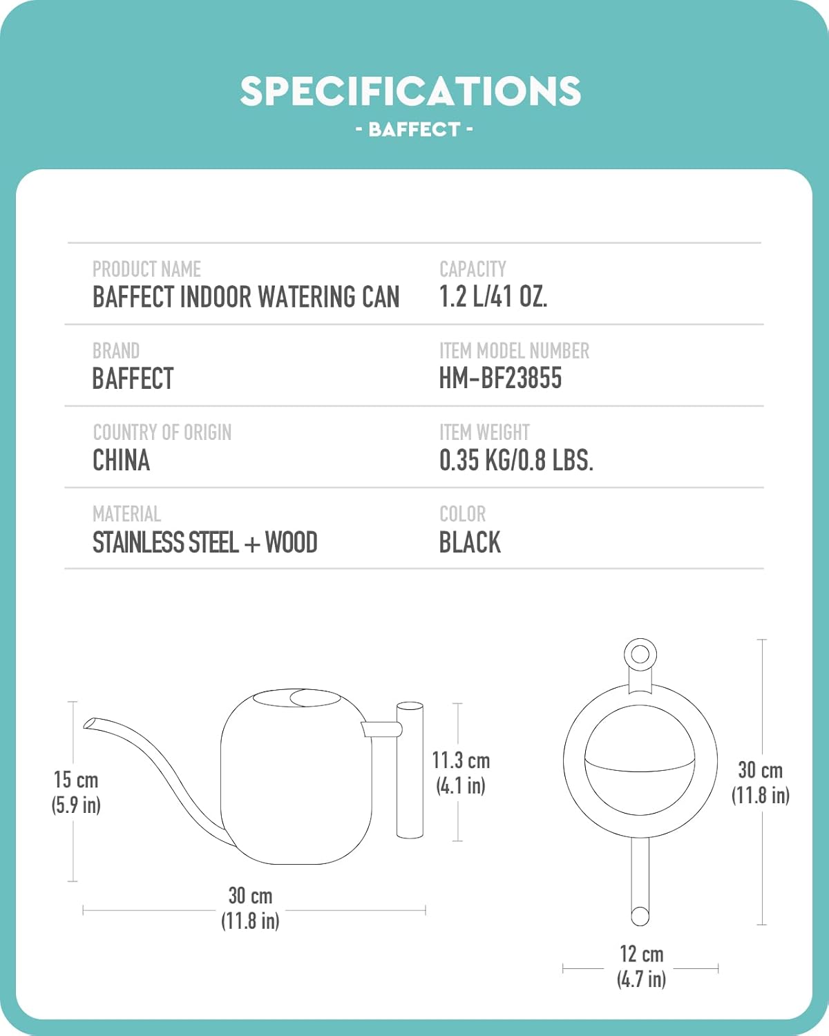 • High-quality material - Baffect Indoor Watering Can is made of high-quality stainless steel for sturdiness and durability. With its frosted coating, this stainless steel watering can for small indoor plants effectively prevent rusting or scratching.