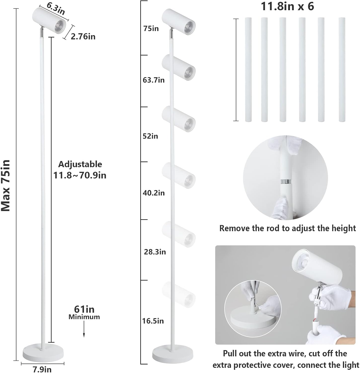 • [360°&Height Adjustment]: The grow plant lamp head is 360° rotatable in all directions to meet the needs of any angle. The plant stand with grow light has 6 level height adjustments from 16.5-75 inches to meet the needs of tall large plants, small plants, seedling, flowering stage. The stable base allows the plant lights for indoor growing to be placed in any small space.