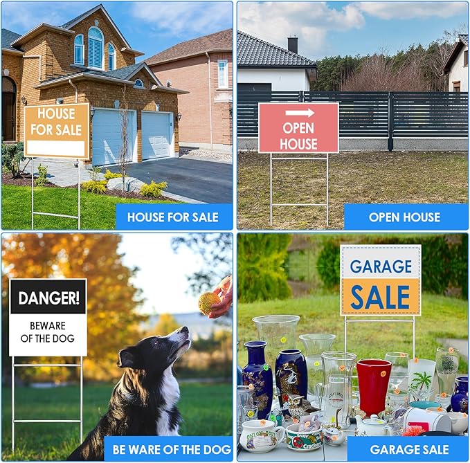 • Easy to Install: there are only 3 steps for you to install, put the lawn sign stakes into the ground, and then attach signs, finally inserts directly into the sign without tools, easy for you to install, suit for both youngers and older, women and men