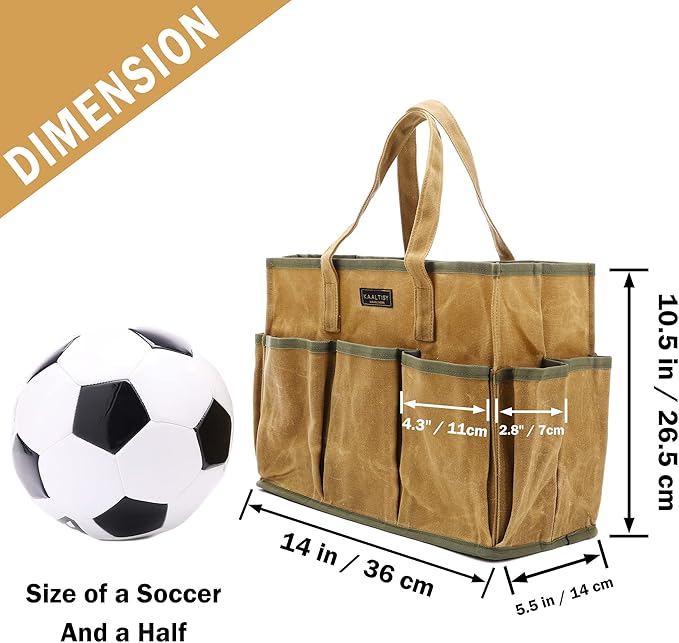16OZ Waxed Canvas Tool Tote Bag | Large-Capacity Tool Storage Tote with 10 External Pockets | Multi-Purpose Garden Tool Carrier for Gardening, Wrench, and Carpentry Tools – Khaki